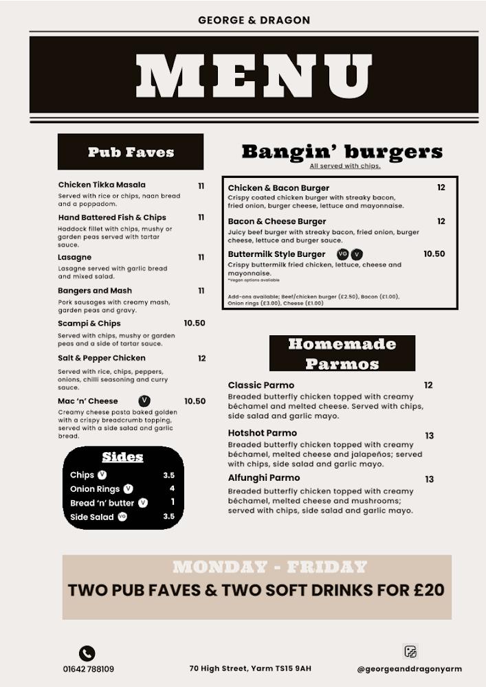 Nestled at 70 High Street, Yarm, the George & Dragon is a true gem in the local pub scene. This establishment combines the charm of a traditional British pub with modern elements, offering a diverse selection of draught beers, craft brews, and an extensive spirits list that caters to every palate. The atmosphere here shifts seamlessly from a relaxed midday gathering to an energetic evening hub, making it an ideal place for socialising or enjoying a casual meal.